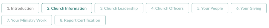 If your church submitted a report last year and you have the report code, the form can pre-fill some of the information to save you time. You can always edit the information if something has changed. (Please note that any fields that were left blank in the previous report will not pre-fill.)